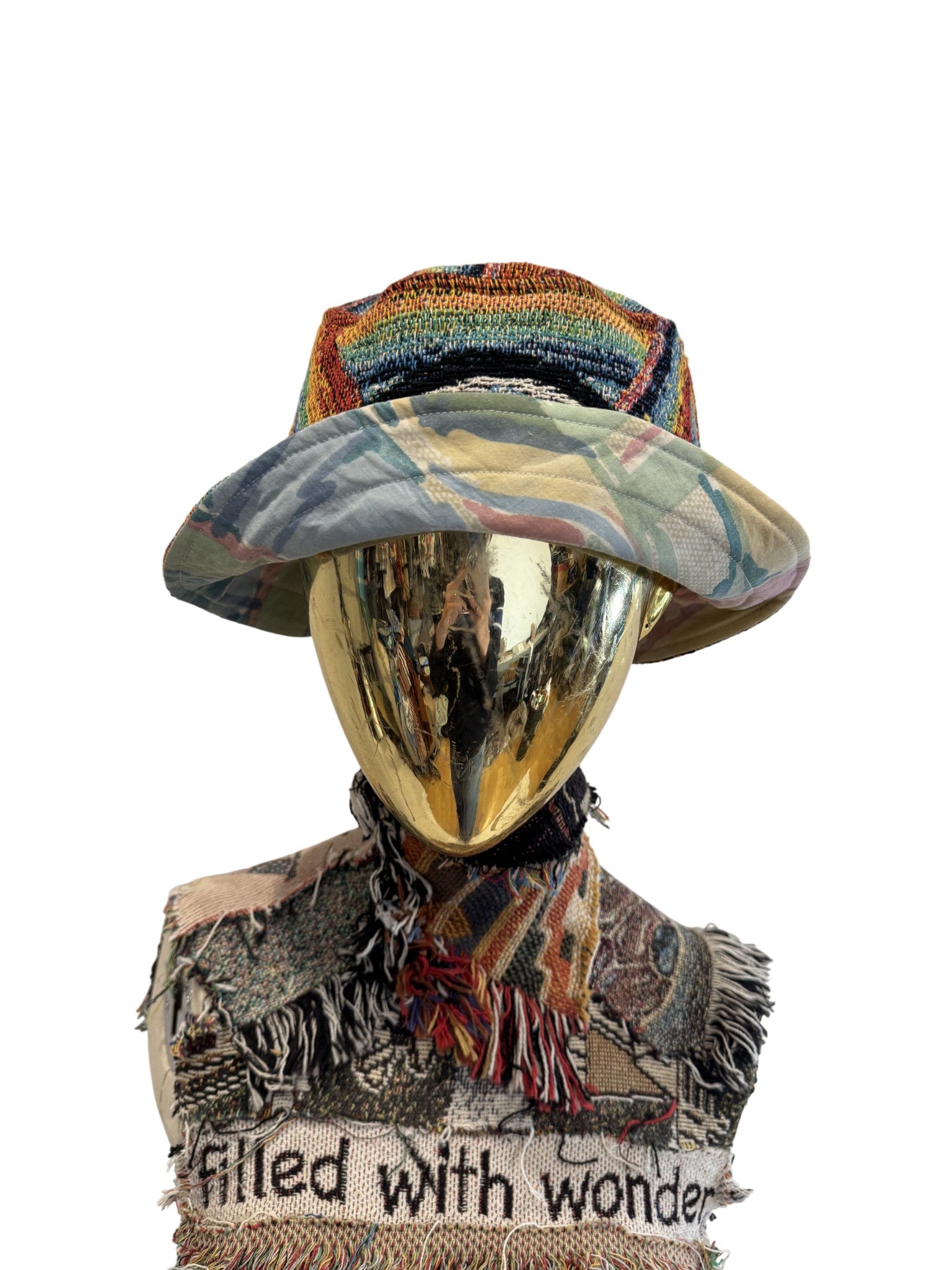 One of a kind bucket hat, made from scraps from 'All Knowing' collaboration with Electrica Designs