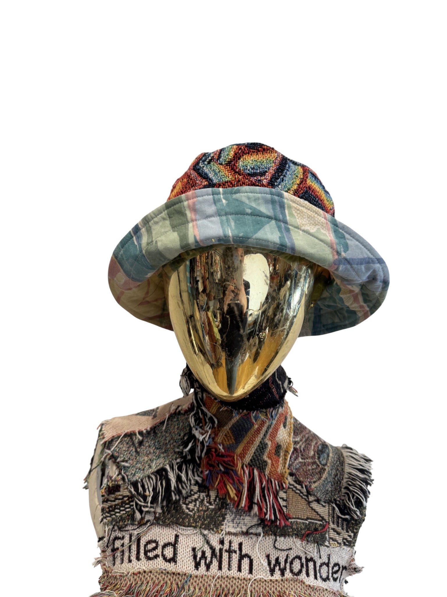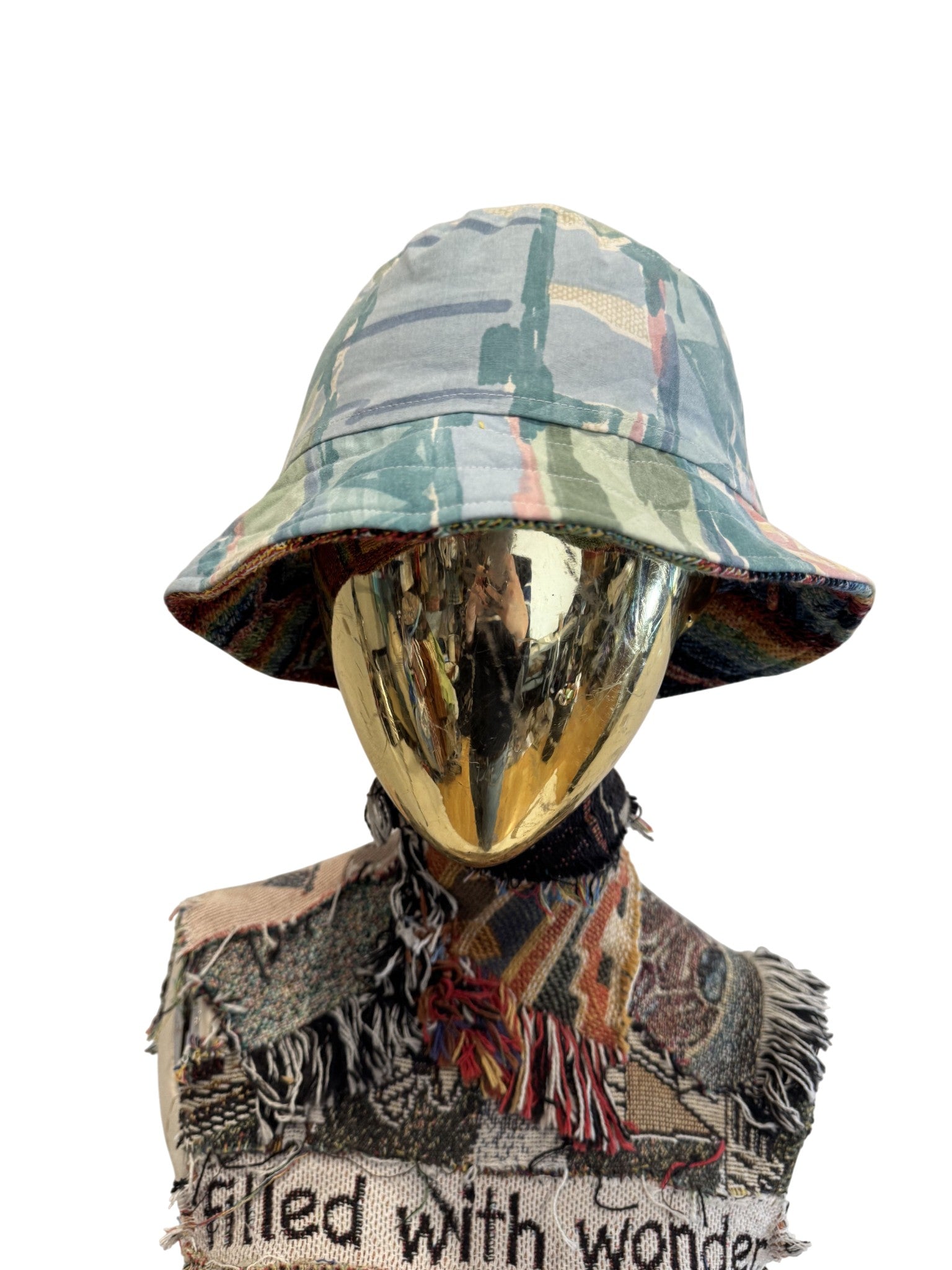One of a kind bucket hat, made from 'All Knowing' collaboration with Electrica Designs