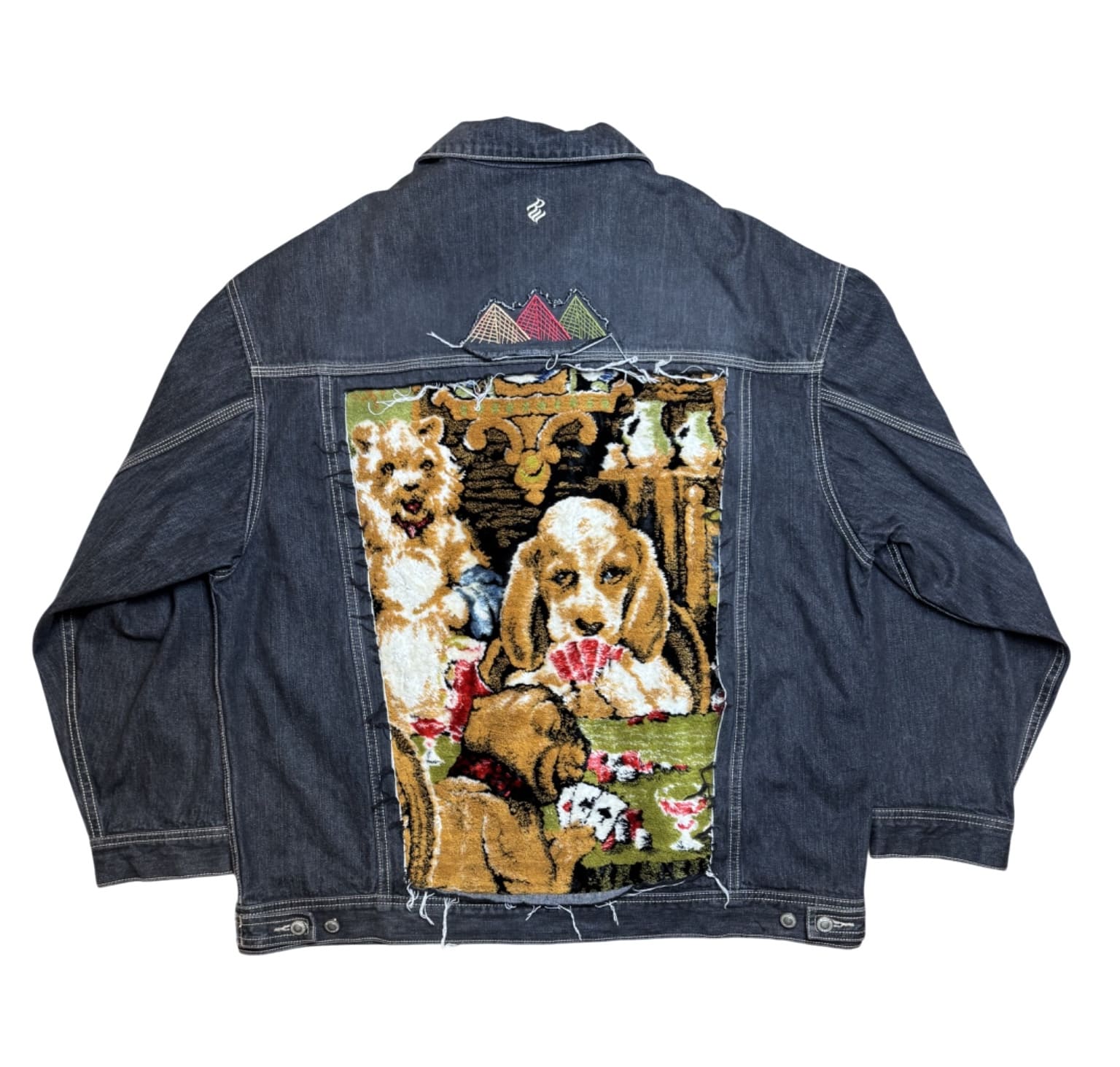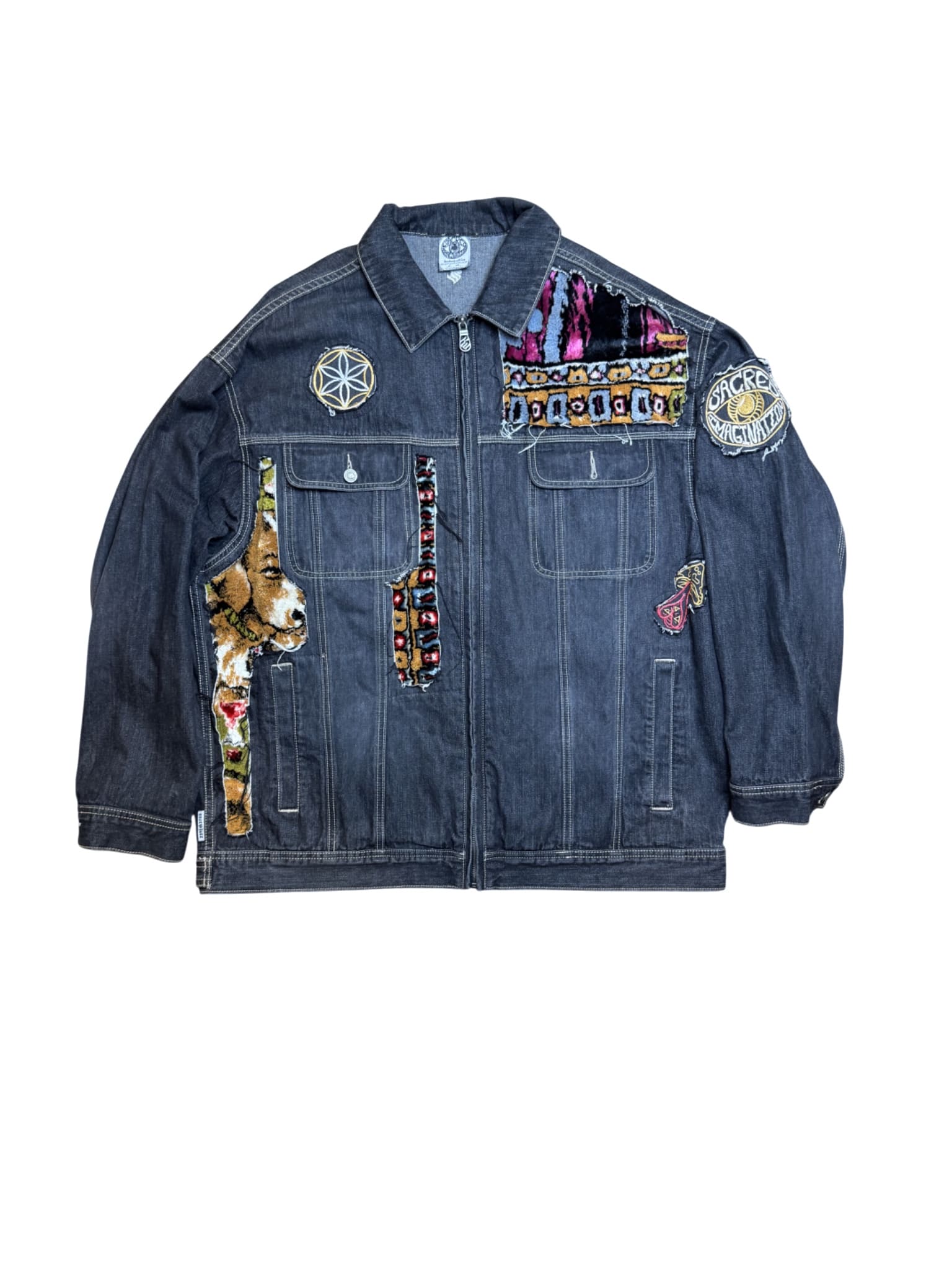 Material: 100% Cotton denim jacket, 100% acrylic rug inserts