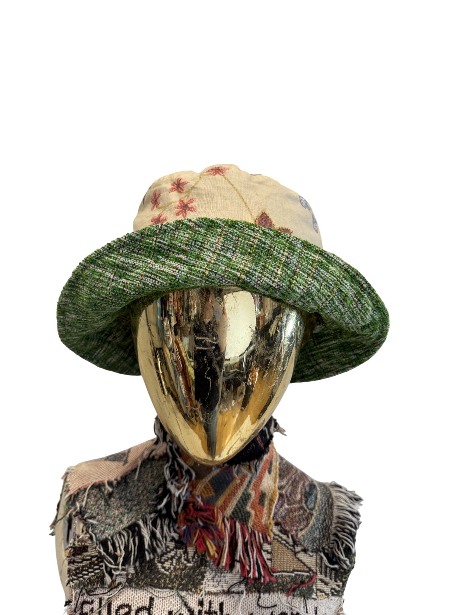 The outer shell is made from a thrifted blanket. Lined with bed sheet and fully reversible