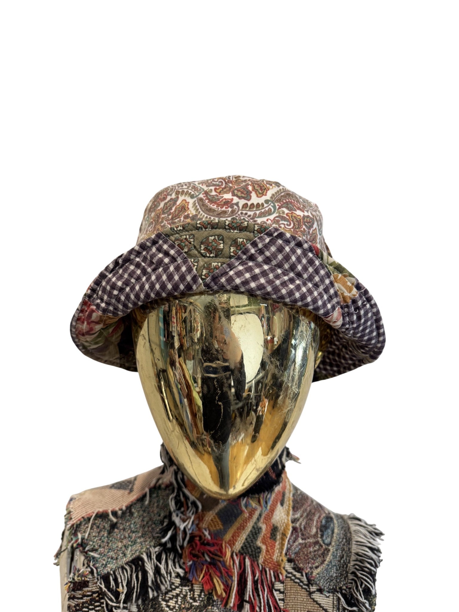 One of a kind bucket hat, made from scraps from other pieces.
