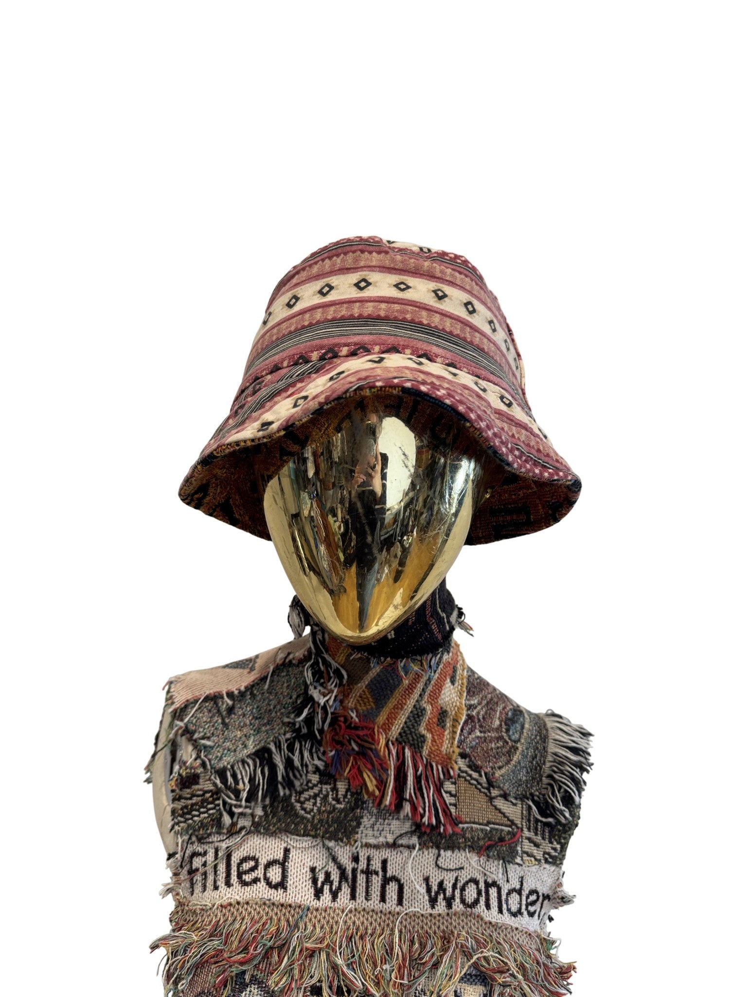 One of a kind bucket hat, made from scraps from other pieces.