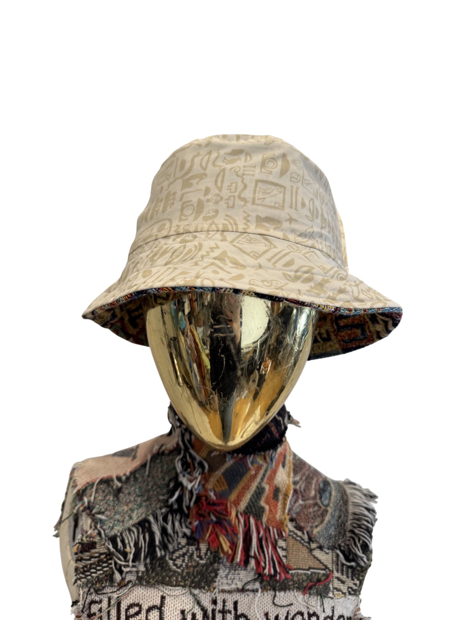 One of a kind bucket hat, made from scraps from other pieces.