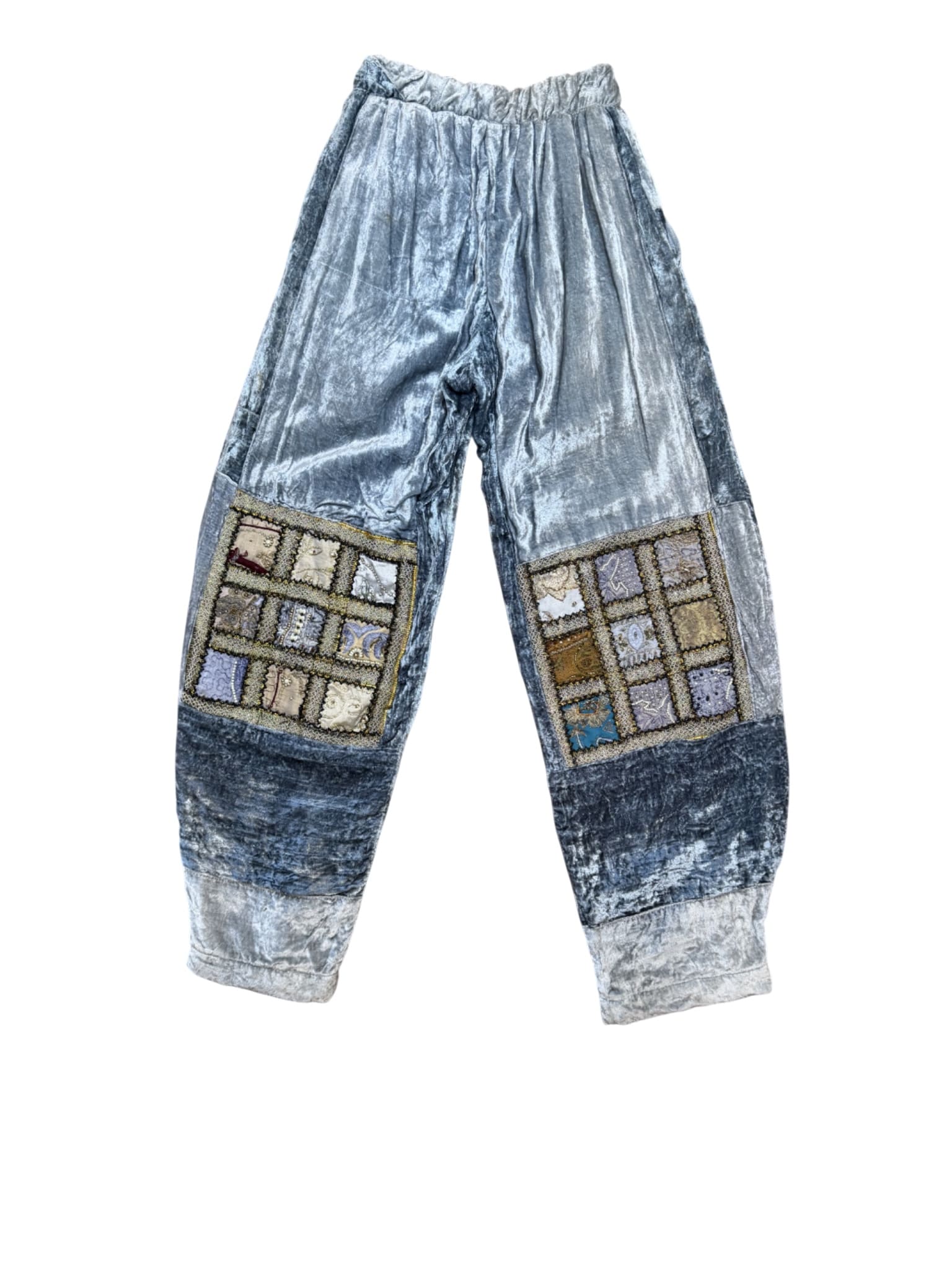 One of a kind pants, made from a thrifted comforter. Elastic waistband and drawstring can cinch waist to size 26 and will stretch up to 32Size: L