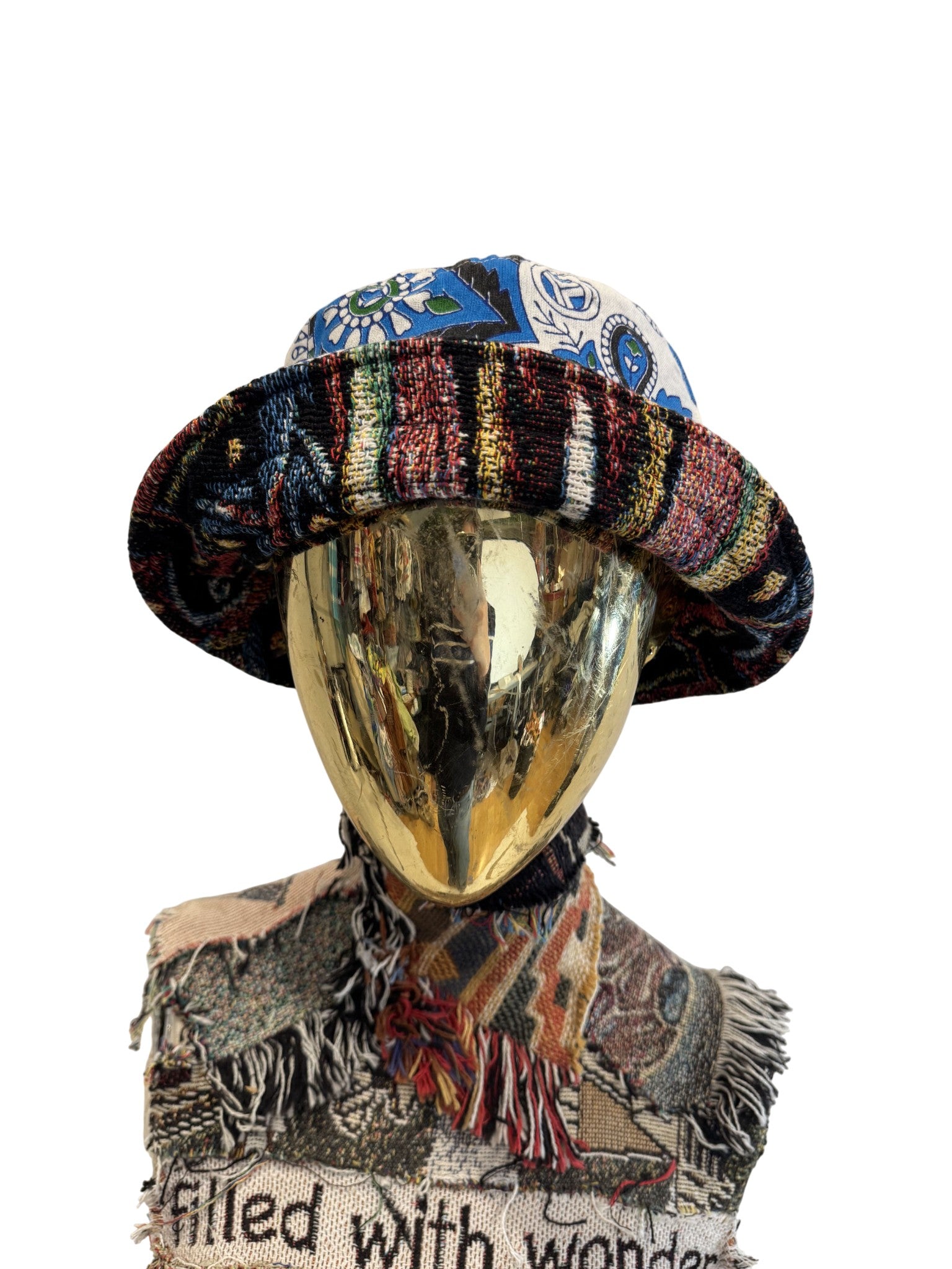 One of a kind bucket hat, made from scraps from other pieces.